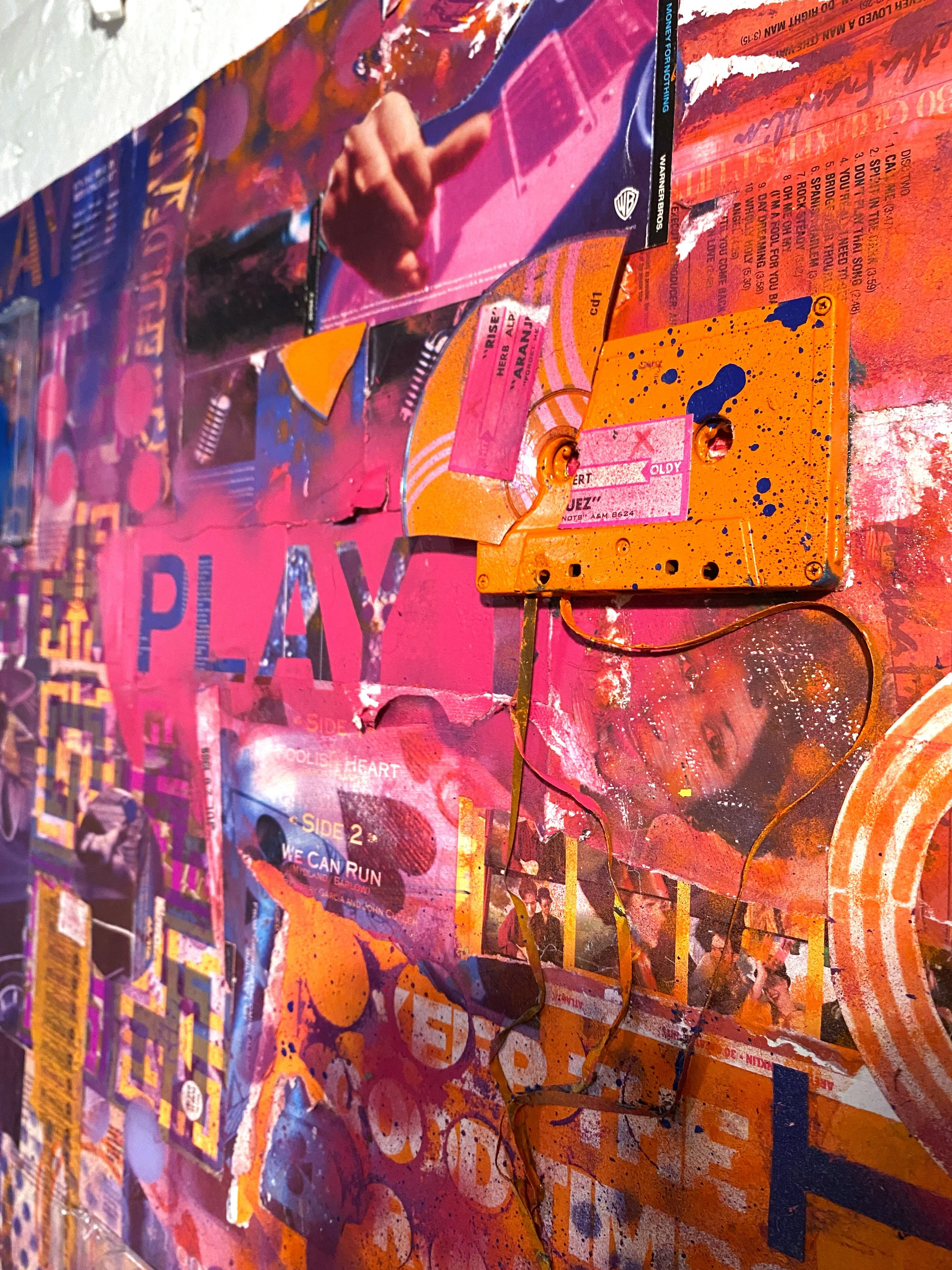 She uses color and a variety of mediums, including acrylic and spray paint, to express the liveliness and raw emotion of the world. She creates bold, expressive, and multi-dimensional art forms that fuse urban culture with fine artistry. Her art’s tactile nature is a key focus, with texture achieved through layering paint, stencils, magazine rips, drawings and stickers.